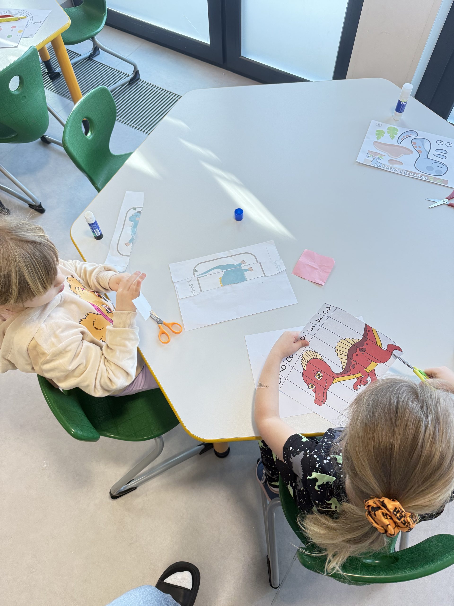 Kącik plastyczny – powstawały piękne, kolorowe prace z dinozaurami.