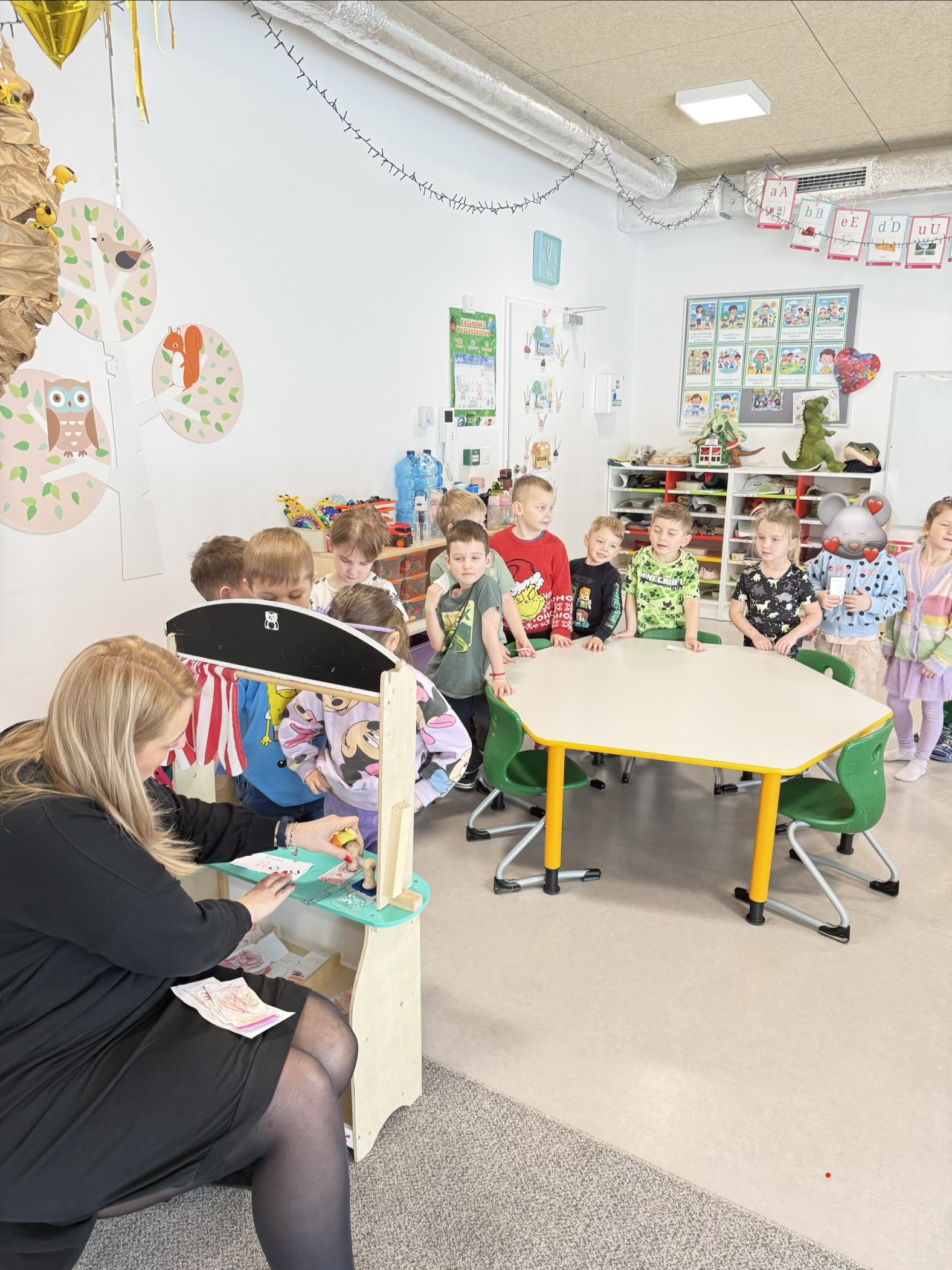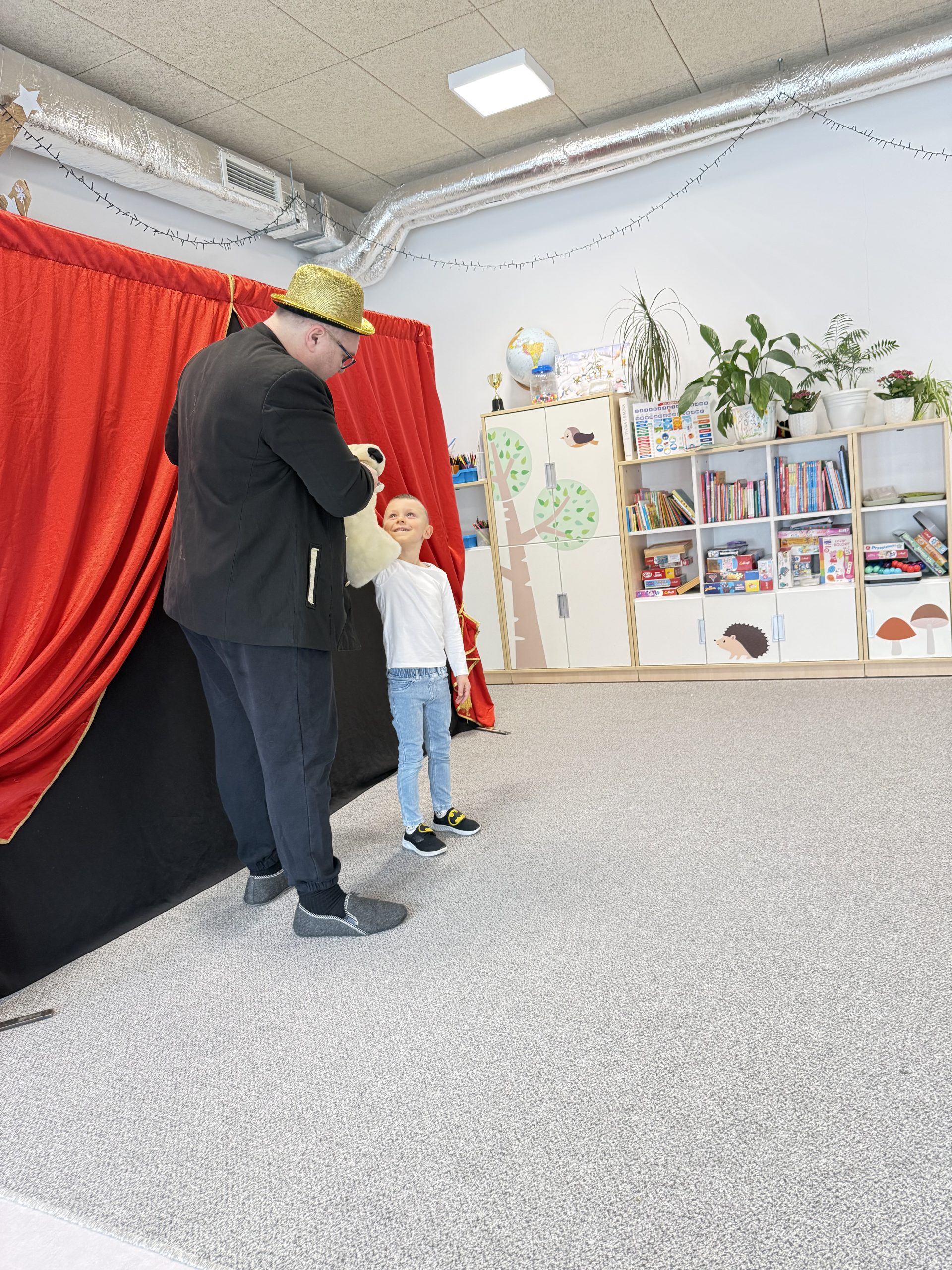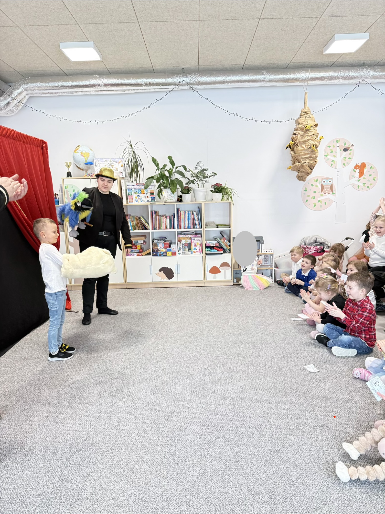 Tydzień Teatru w naszym przedszkolu był pełen radości, twórczej zabawy i nowych doświadczeń. Dzieci dowiedziały się, czym jest teatr, kto w nim pracuje oraz jak należy zachowywać się podczas przedstawienia. Poznały takie pojęcia jak scena, widownia, kurtyna czy kostium. Czytaliśmy znane bajki, m.in. Czerwony Kapturek i Trzy świnki, a następnie wspólnie je inscenizowaliśmy. Dzieci ćwiczyły mimikę, gesty oraz wyrażanie emocji, rozwijając swoją wyobraźnię i odwagę.