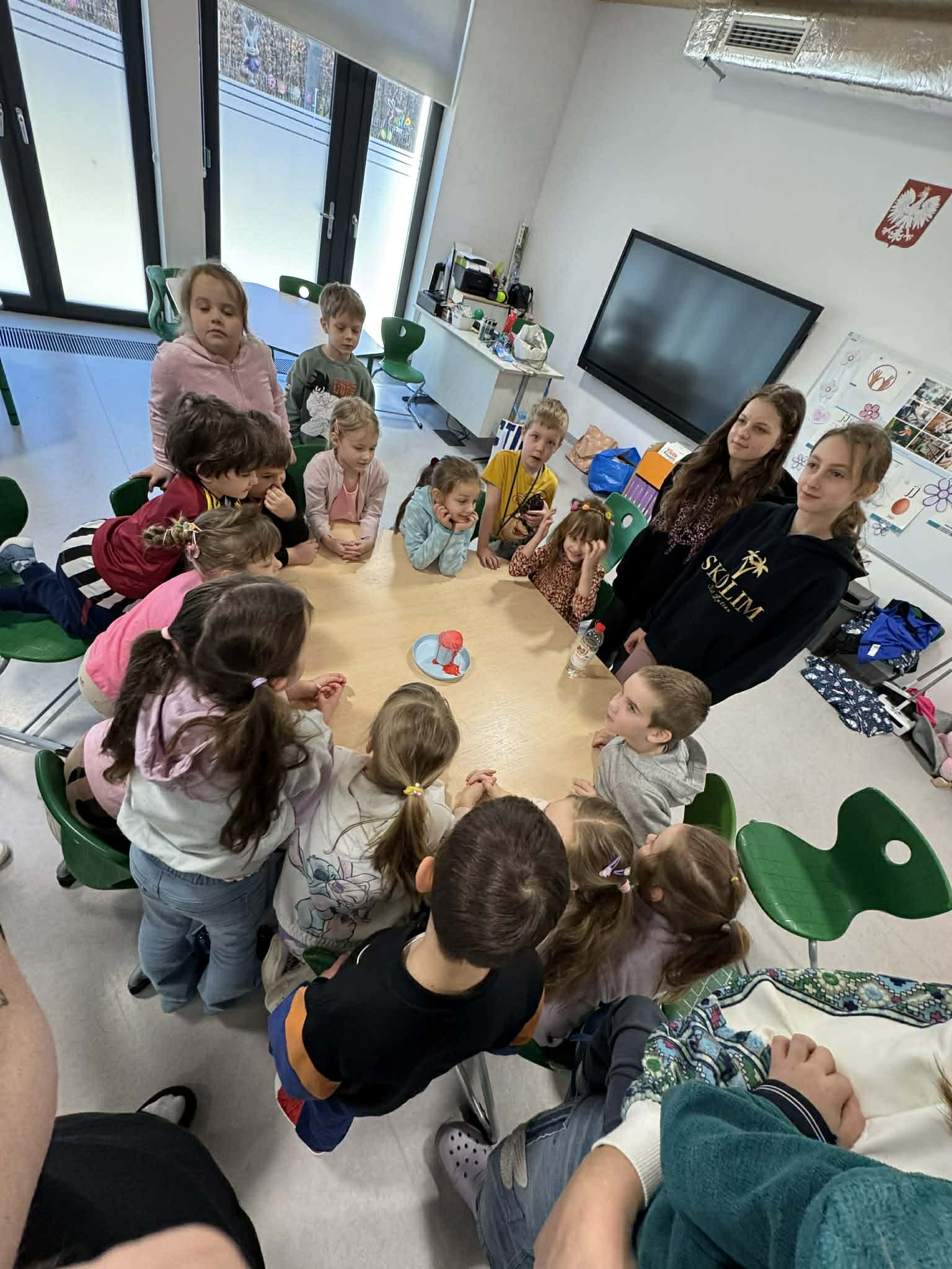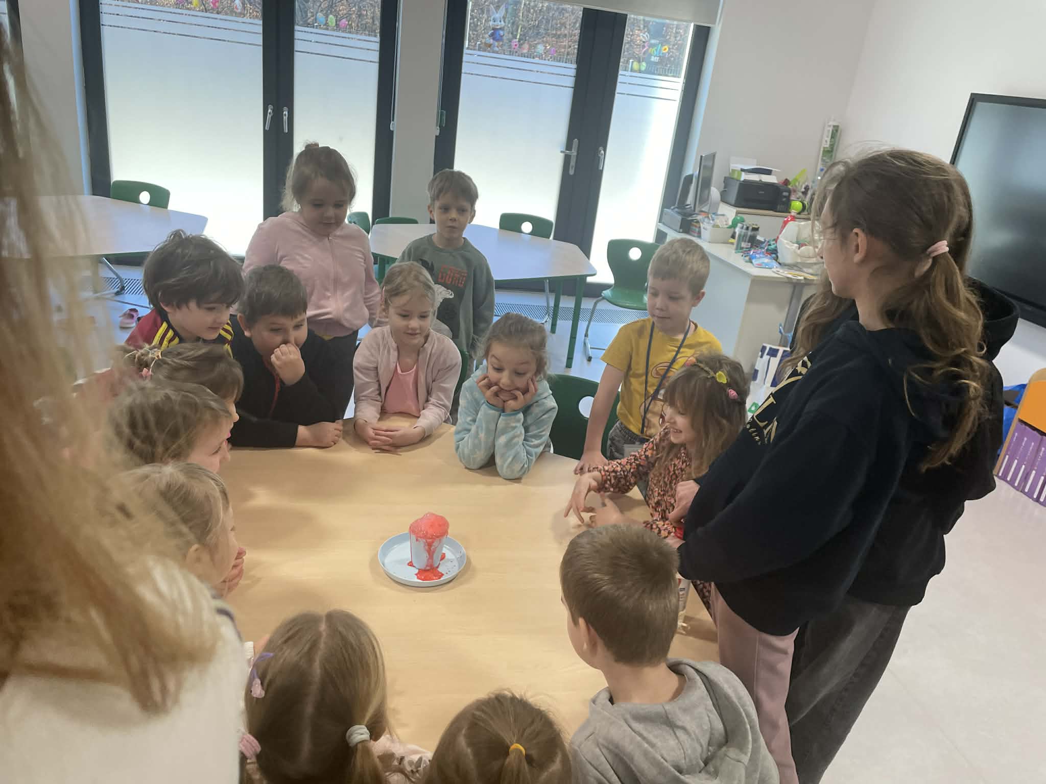 Kolejną atrakcją był eksperyment z „wulkanem złości”, który w obrazowy sposób pokazał dzieciom, jak emocje mogą się kumulować i wybuchać. Na zakończenie odbyła się wesoła zabawa ruchowa, dzięki której przedszkolaki mogły rozładować energię.