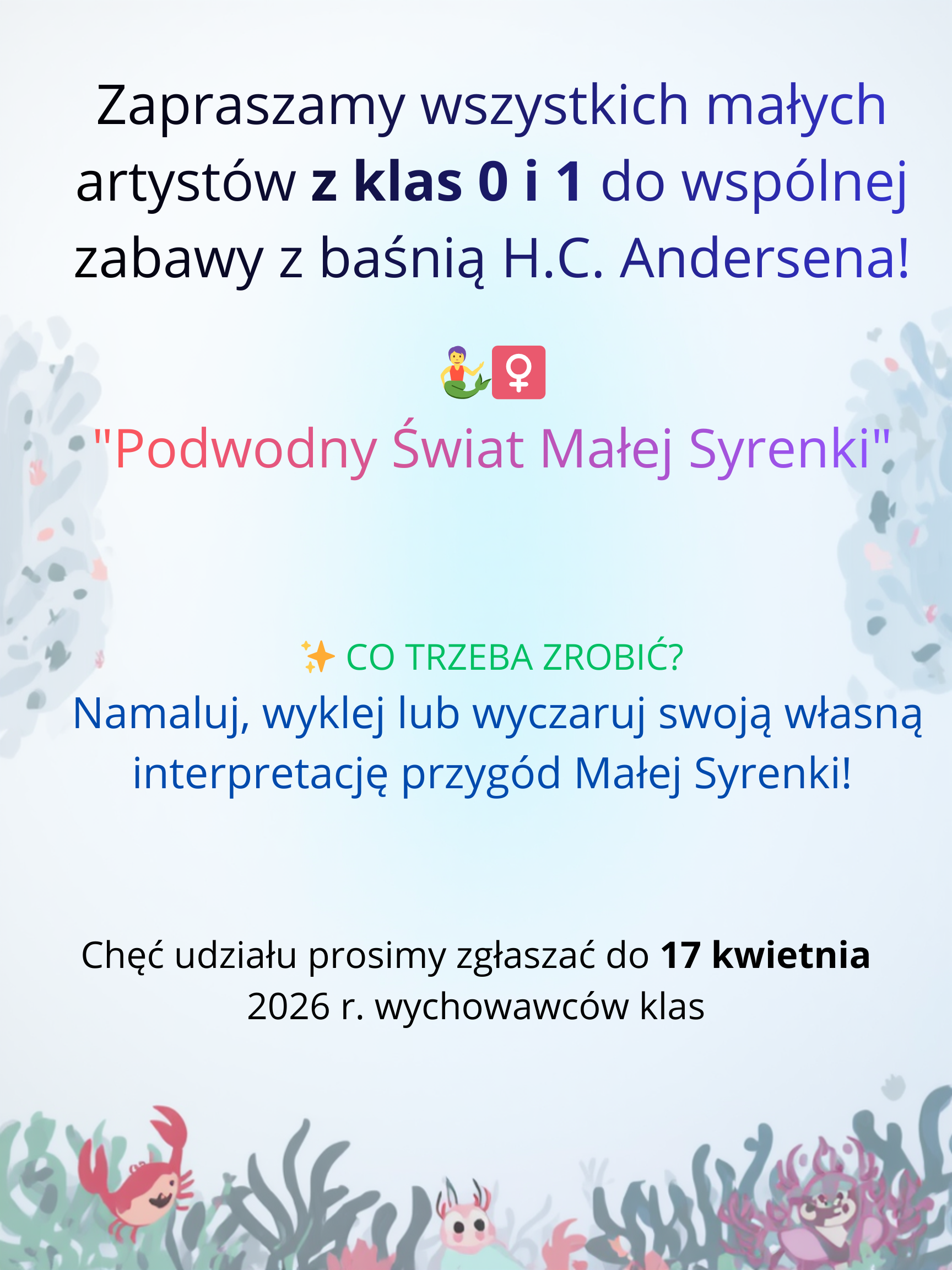 3. Zakres tematyczny obejmuje znajomość treści baśni pt. „Mała Syrenka” Hansa Christiana Andersena.