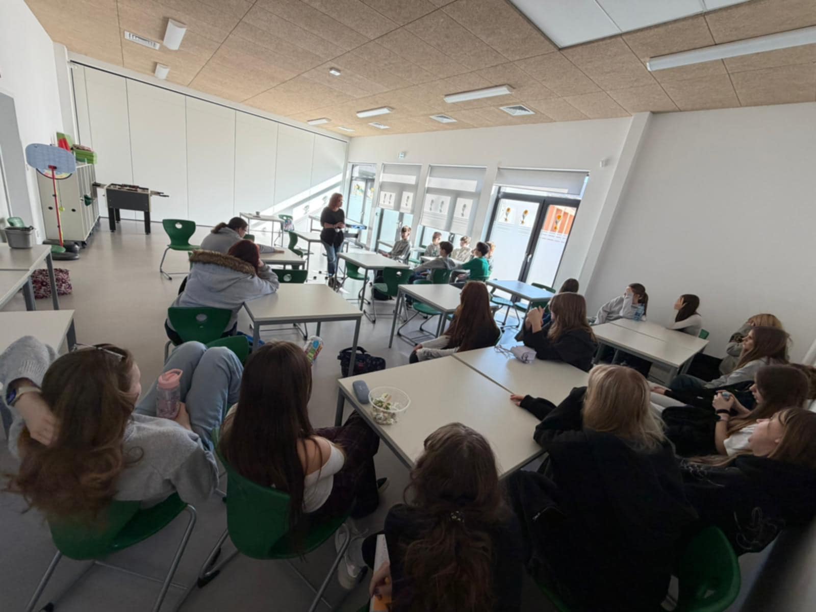 Podczas pierwszego warsztatu pt. „Zalogowani czy uwięzieni? Jak nie wpaść w cyfrową spiralę” uczniowie poznawali wczesne sygnały nadmiernego korzystania z ekranów oraz mechanizmy działania algorytmów i ich wpływu na emocje. Analizowali codzienne sytuacje, takie jak ciągłe powiadomienia czy bezrefleksyjne scrollowanie, oraz zastanawiali się, jak rozsądnie korzystać z technologii. Wspólnie szukali sposobów na stawianie realnych granic czasu online i dbanie o równowagę między światem cyfrowym a aktywnościami offline.