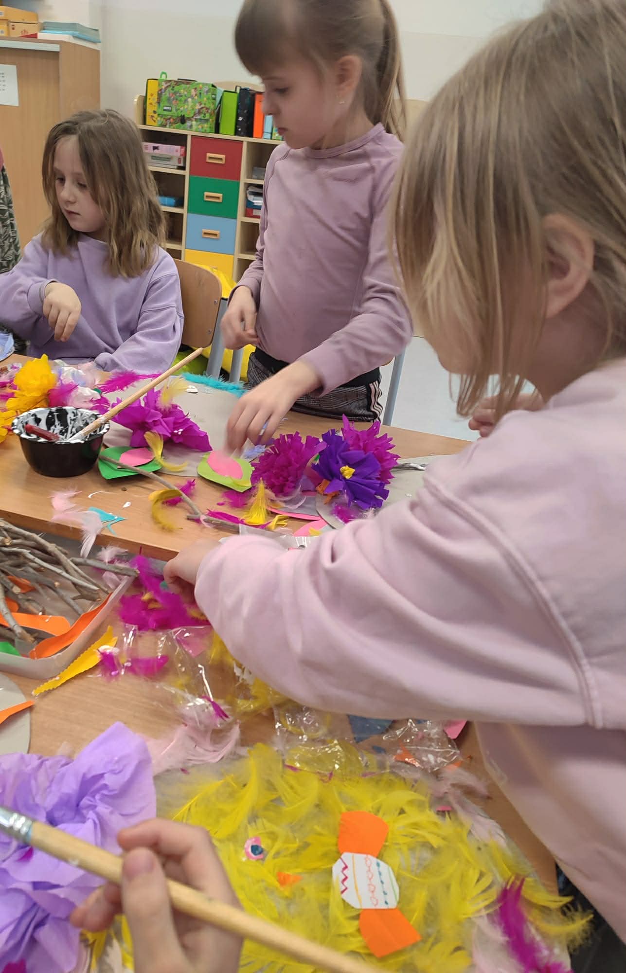 Dnia 31.03.2026 r. W klasie 1 a odbyły się Warsztaty Wielkanocne przy Artystycznym Stole. Dzięki Pani Joannie mamie Cypriana dzieci spędziły przyjemnie czas tworząc wspaniałe świąteczne dekoracje.