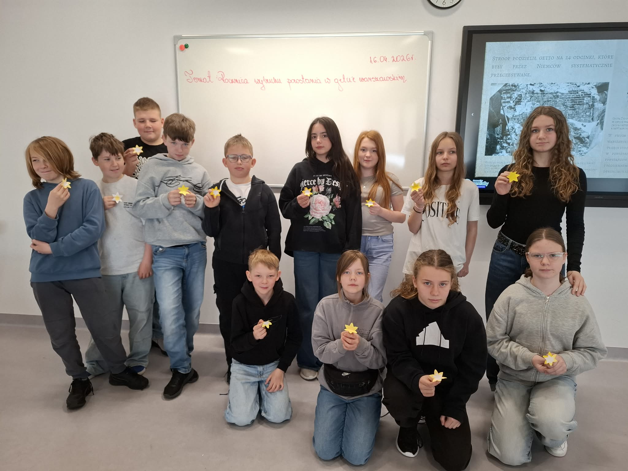 Upamiętniamy ludność żydowską, która się nie poddała, która z honorem i odwagą podjęła działania i przystąpiła do powstania. Aby przybliżyć uczniom dokładną historię, zapoznaliśmy się z filmem edukacyjnym „Będę pisać”.