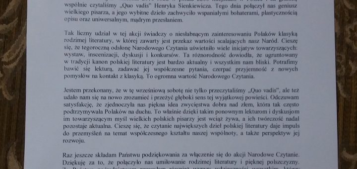 PODZIĘKOWNIA OD PANA PREZYDENTA ANDRZEJA DUDY