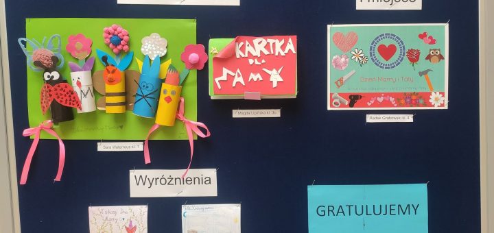 Mamy zaszczyt ogłosić wyniki szkolnego konkursu na kartkę z okazji Dnia Mamy i Taty. Nadesłane prace oceniała komisja w składzie:...