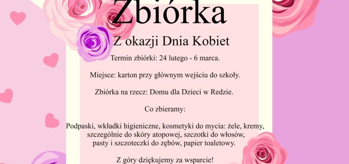 W piątek – 6 marca zakończyliśmy zbiórkę kosmetyków i podpasek dla dziewcząt, które mieszkają w Domu dla Dzieci w Redzie....