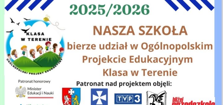Z radością pragniemy poinformować, iż nasza Szkoła kolejny raz bierze udział w Ogólnopolskim Projekcie Edukacyjnym Klasa w Terenie pod patronatem...