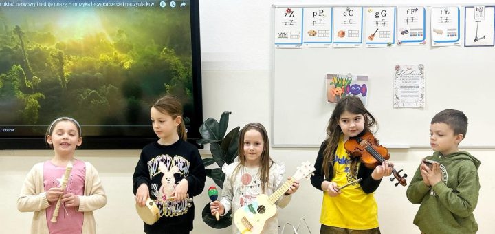 Dzisiejsza lekcja muzyki w klasie 1 była pełna dźwięków i radości! Dzieci przyniosły swoje instrumenty – skrzypce, ukulele, harmonijkę, tamburyn...